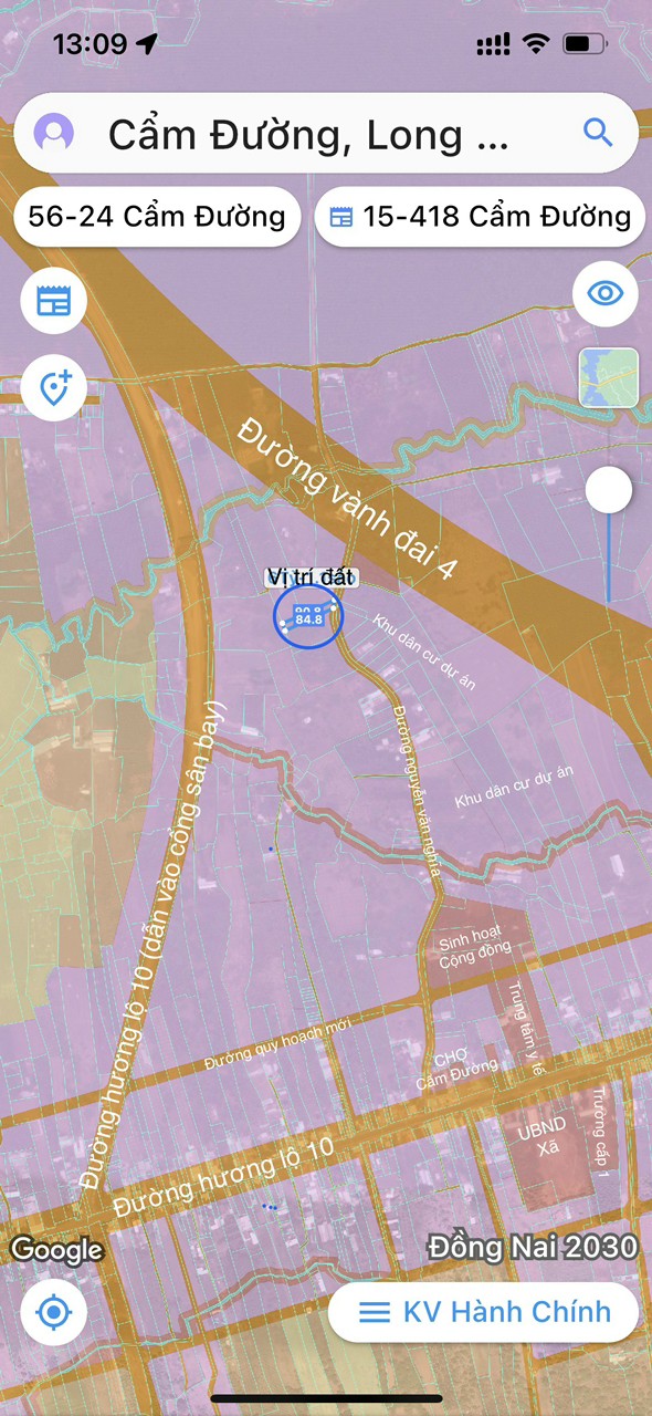Mặt tiền 13m4 x dài 84m4 quy hoạch phủ hồng đất ở khu dân cư hiện hữu, có thể lên thổ cư ngay sau khi mua (hỗ trợ nộp hồ sơ lên thổ cư).