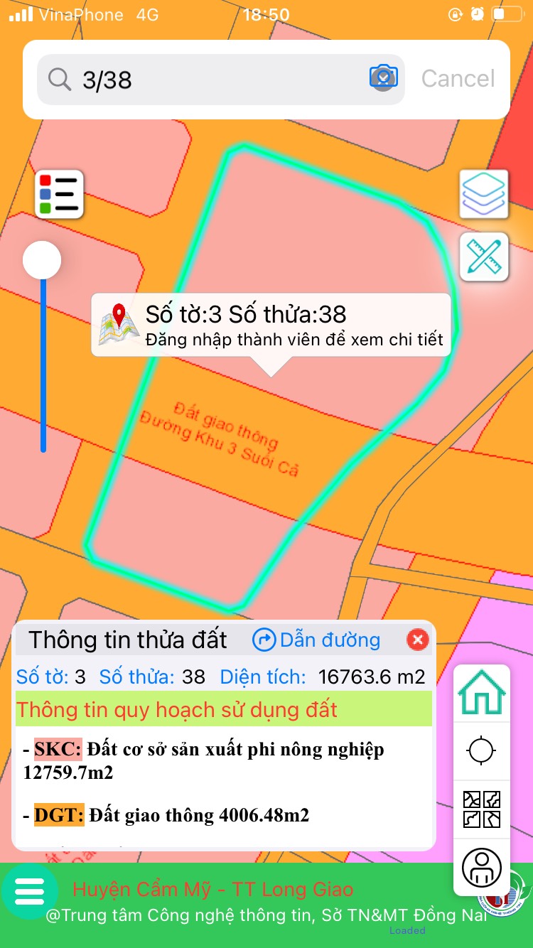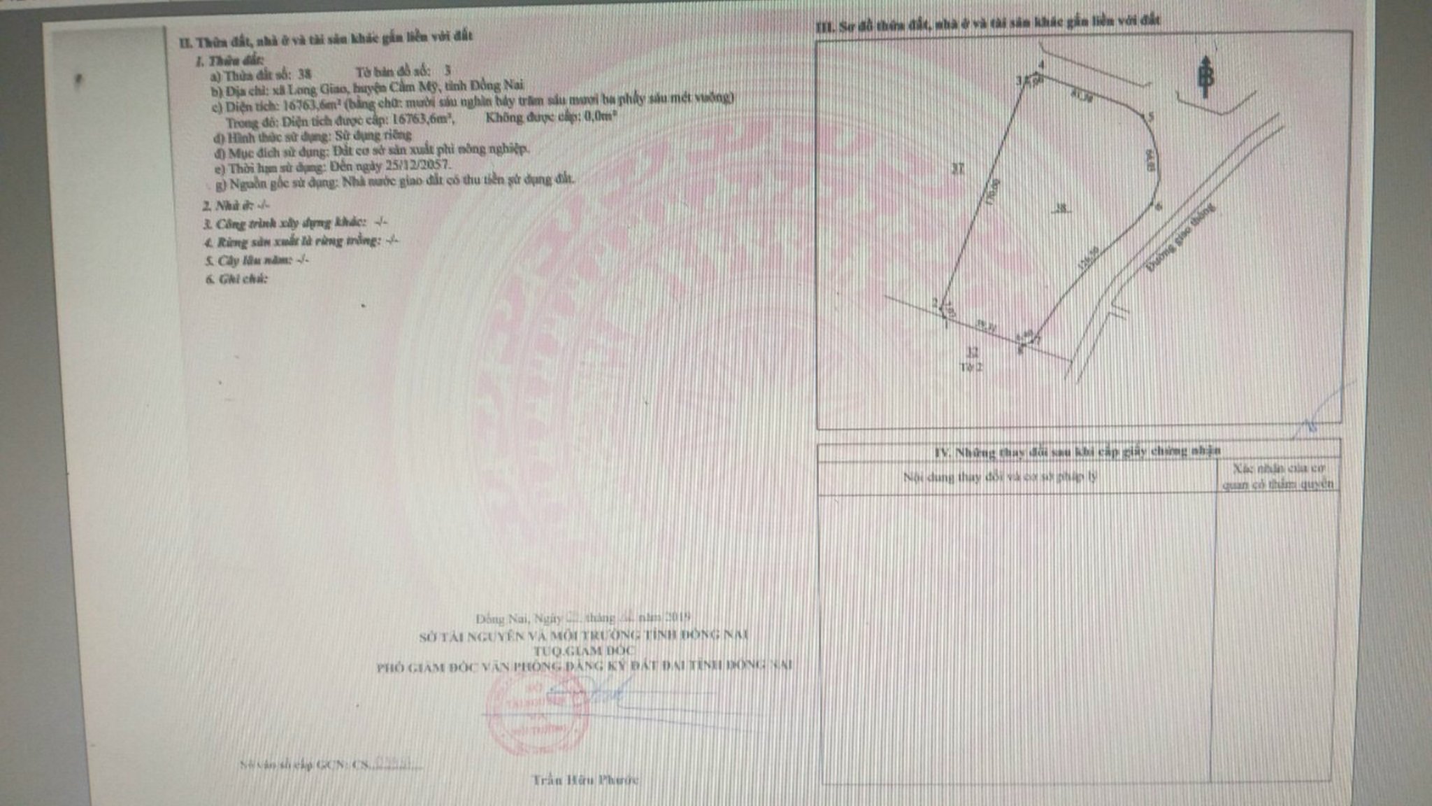 Chuyển nhượng 16.763,6m2 đất thị trấn Long Giao, huyện Cẩm Mỹ.