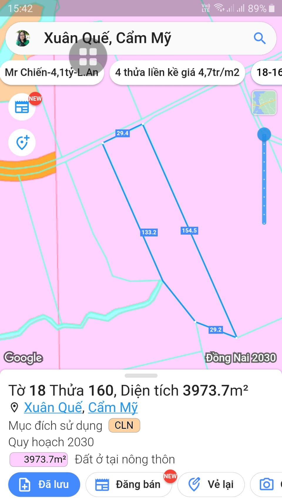 Bán 3973,7m2 ấp Suối Râm, xã Xuân Quế, huyện Cẩm Mỹ.