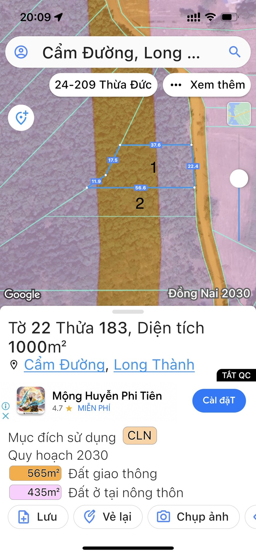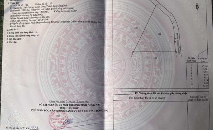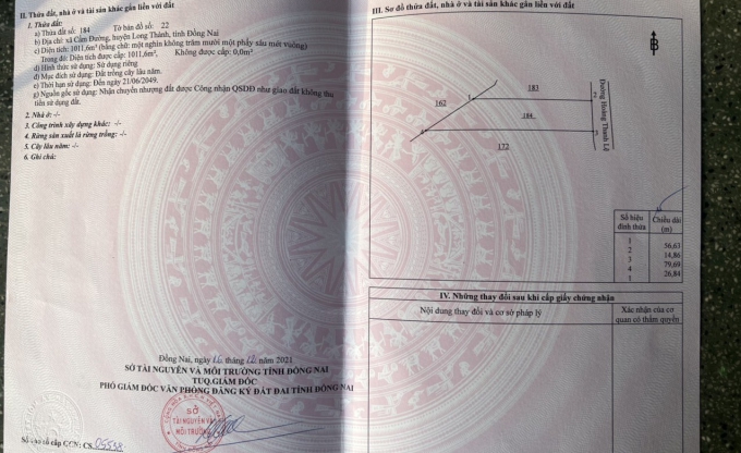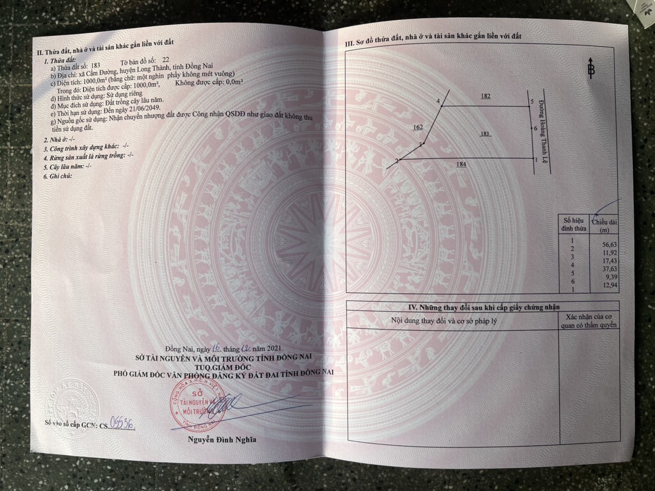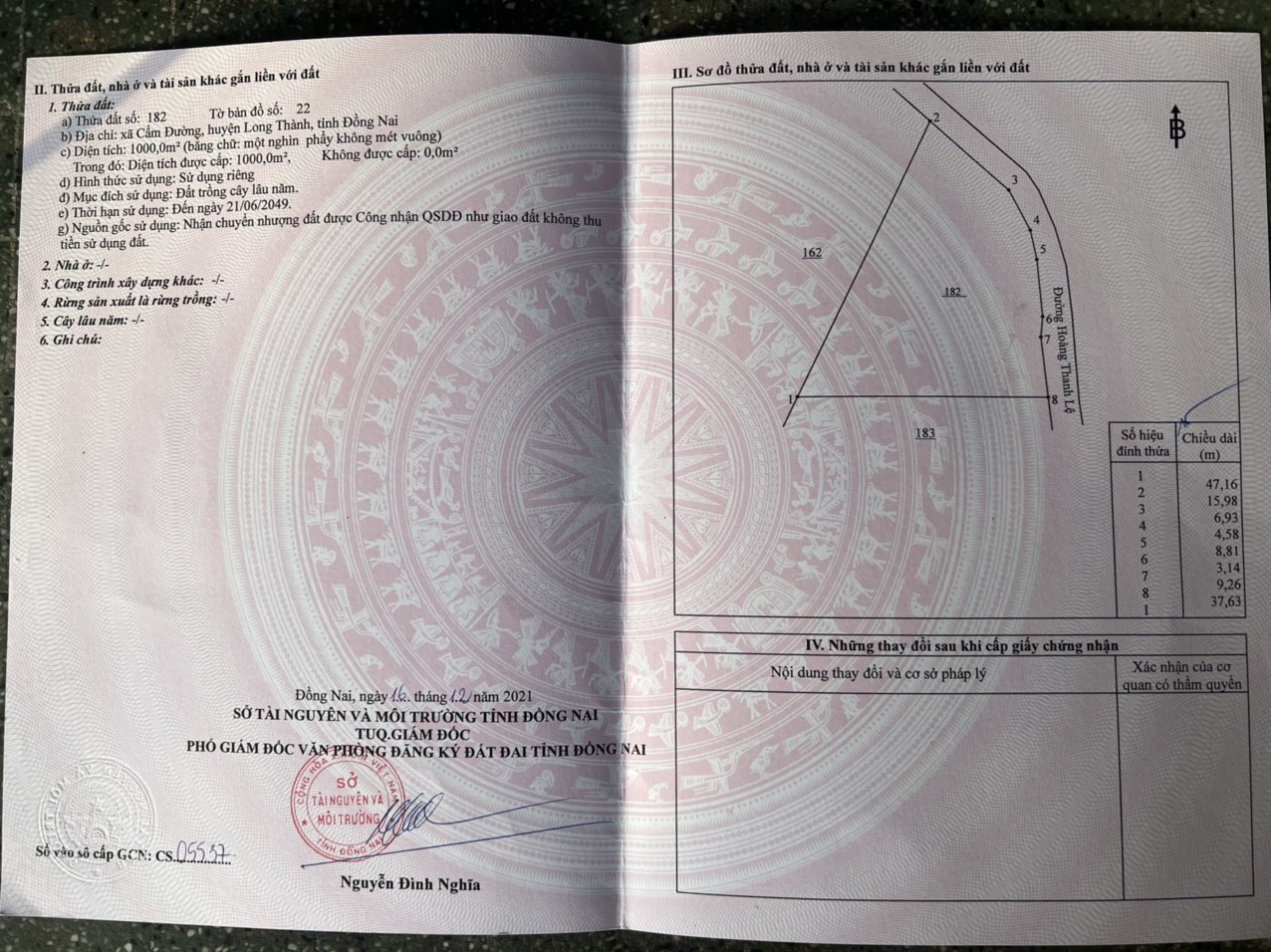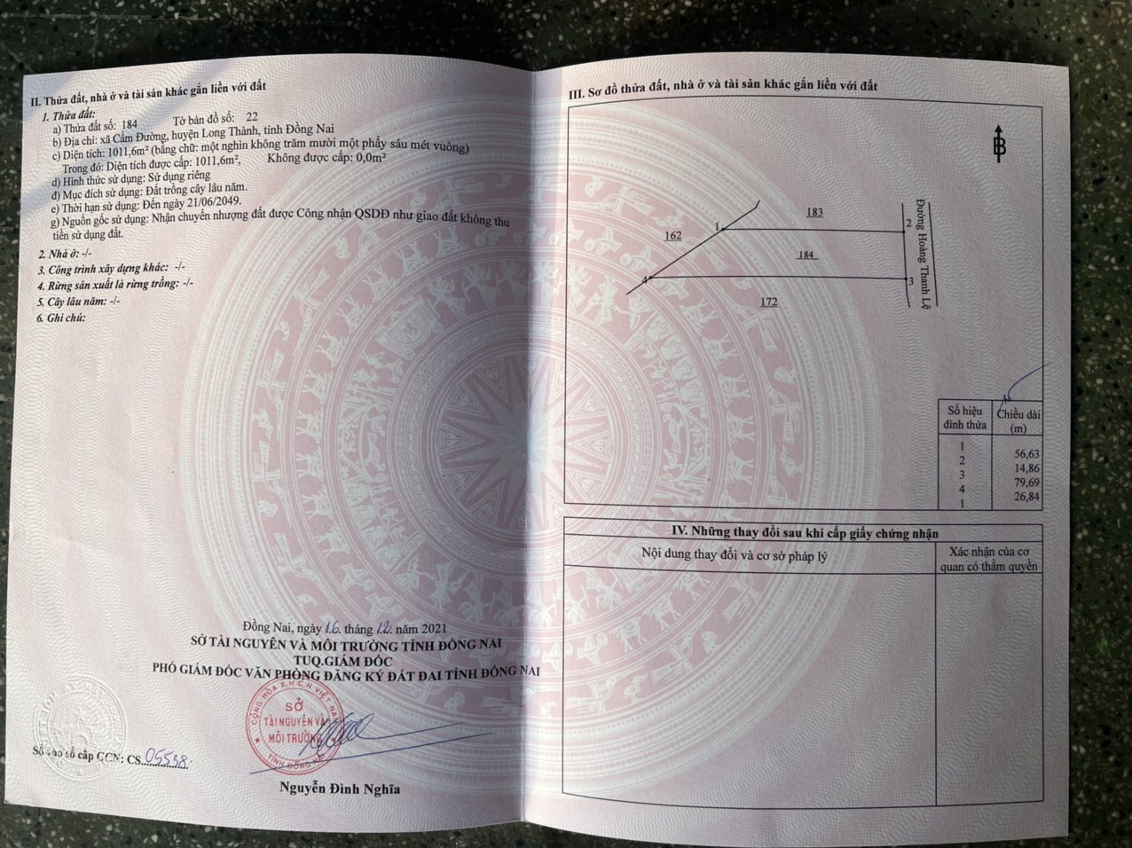Vị trí mặt tiền đường Hoàng Thanh Lệ xã Cẩm Đường, huyện Long Thành.