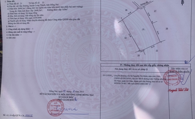 Cần bán quỹ đất quy hoạch phủ hồng full diện tích. Ngang 42m2 x dài 68m2 - Tờ 33/51