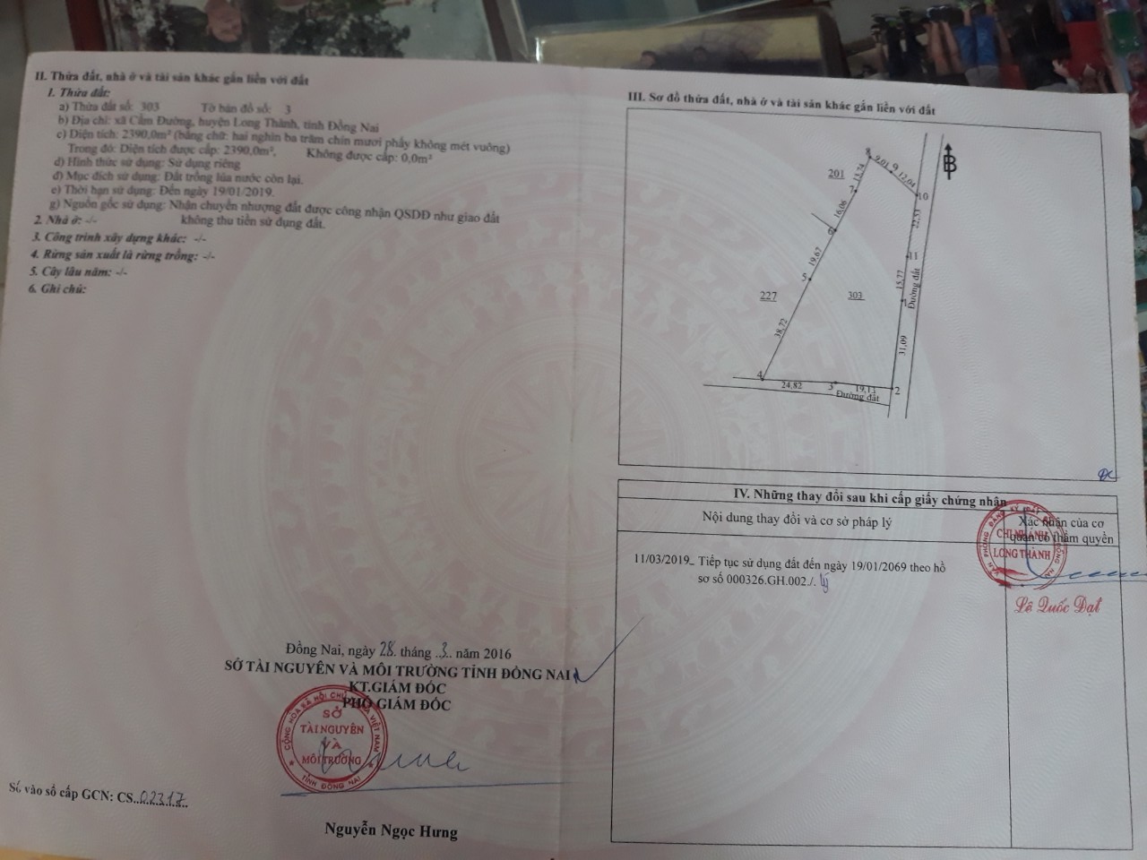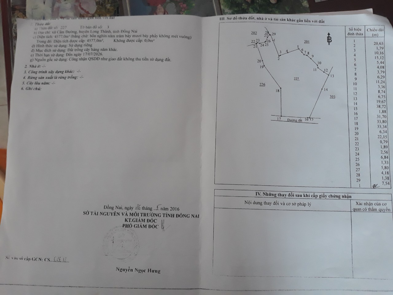 Chính chủ cần bán đất góc 2 mặt tiền đường 4m xã Cẩm Đường, huyện Long Thành. Giá 2,9 triệu/m2. Phí dịch vụ 2%.