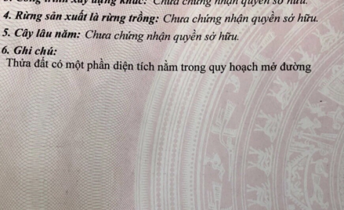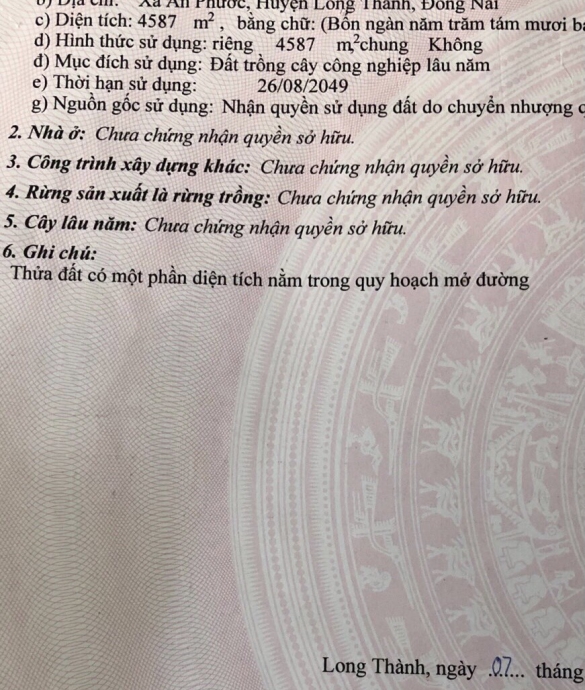 - Ngang 30m dài hơn 150m tổng diện tích 4587m2 đất trồng cây lâu năm.