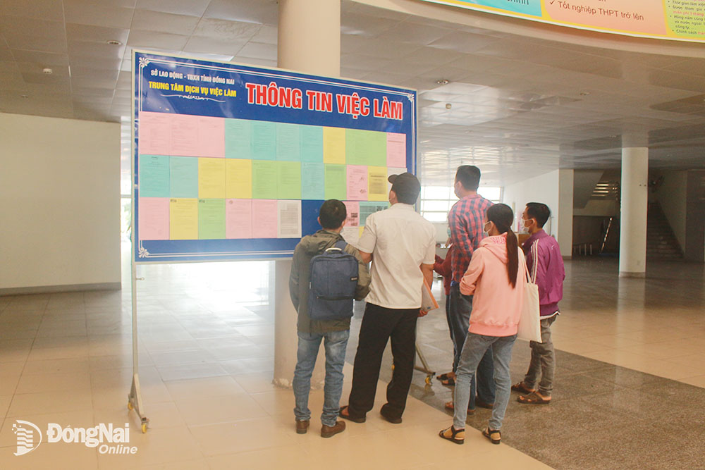 | Người lao động tham gia tìm hiểu thông tin việc làm tại Trung tâm Dịch vụ việc làm Đồng Nai |