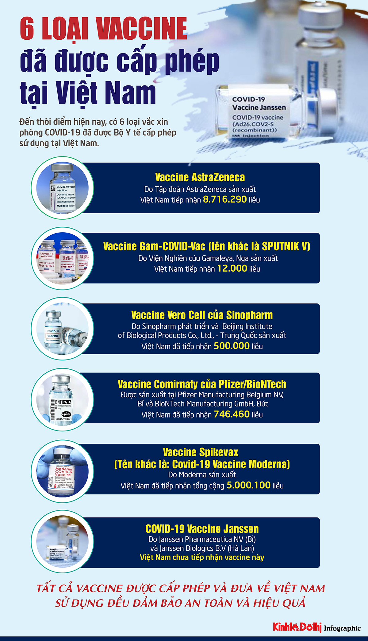 > 6 loại vaccine đã được cấp phép tại Việt Nam