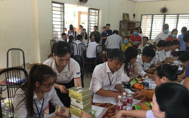 Người dân vùng dự án sân bay nhận tiền đền bù. Ảnh: Mạnh Thắng