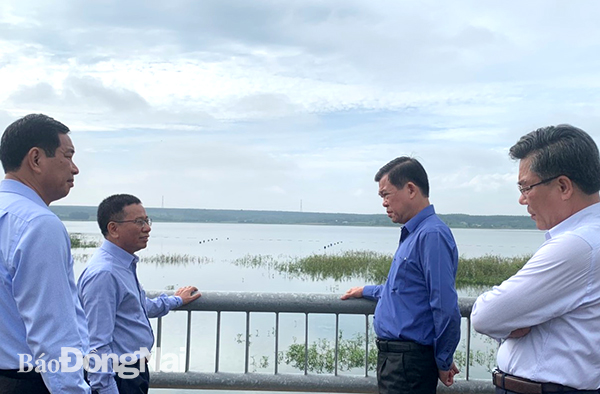 | Ủy viên Trung ương Đảng, Bí thư Tỉnh ủy Nguyễn Hồng Lĩnh khảo sát tại hồ Cầu Mới (H.Long Thành). |