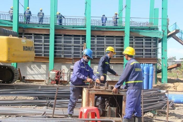 Nhà thầu bố trí công nhân làm 3 ca, nhiều hạng muc thi công cả ngày lẫn đêm.