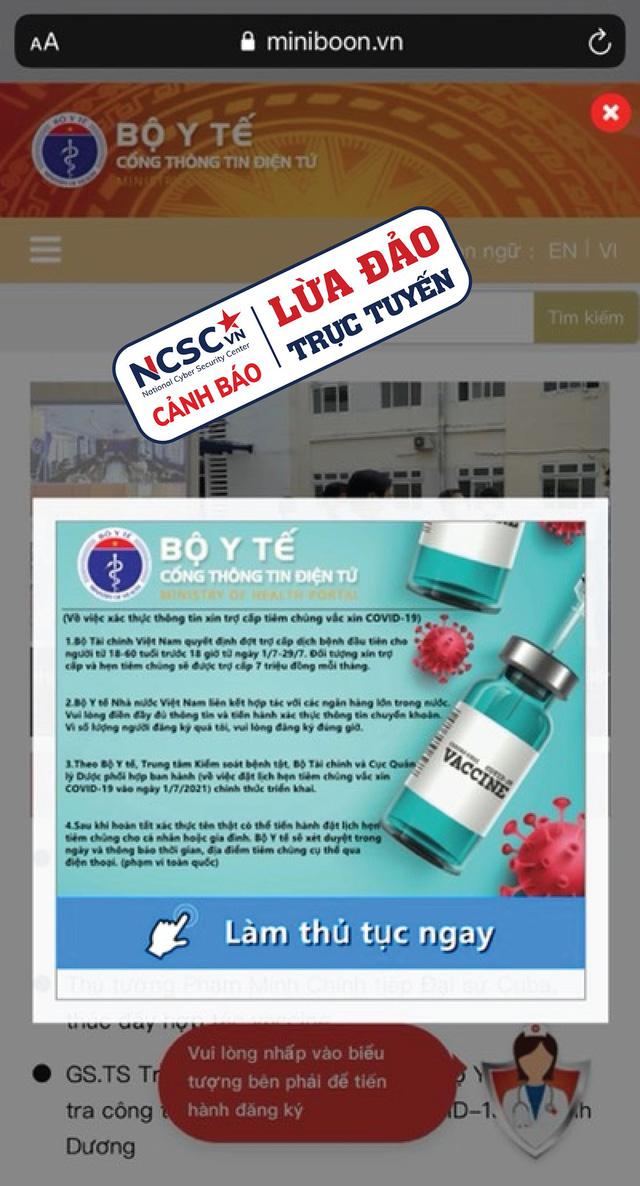 > Cảnh báo giả mạo website của Bộ Y tế để lừa đảo