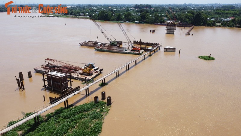 Toàn cảnh công trường thi công cầu Bạch Đằng 2 trên sông Đồng Nai