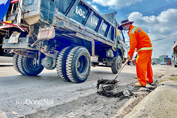 Ông Viên Thế Từ, nhân viên Đội Duy tu cho hay: “Công việc mỗi ngày của chúng tôi là quét dọn, nạo vét bùn đất trên đường, cống rãnh, dặm vá “ổ gà”, kẻ vạch sơn… trên suốt tuyến quốc lộ 51, chủ yếu các đoạn đi qua địa phận TP.Biên Hòa và H.Long Thành. Do khu vực này đông xe lưu thông, đường nhanh chóng xuống cấp hơn, nhất là xe đầu kéo, xe tải ben chở đá nên làm việc ở đoạn này rất vất vả, bụi bặm nhiều”.