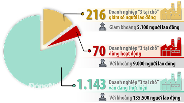 | Đồ họa thể hiện số lượng doanh nghiệp "3 tại chỗ" đang thực hiện, dừng hoạt động và giảm lao động của 4 địa phương: TP.Biên Hòa, H.Nhơn Trạch, H.Long Thành và H.Trảng Bom tính đến ngày 18-8 (Thông tin: Hương Giang - Đồ họa: Hải Quân) |