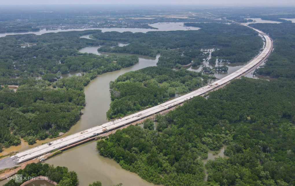 Cao tốc đoạn chạy qua rừng ngập mặn ở huyện Long Thành, Đồng Nai, hồi tháng 8/2022. Ảnh: Quỳnh Trần