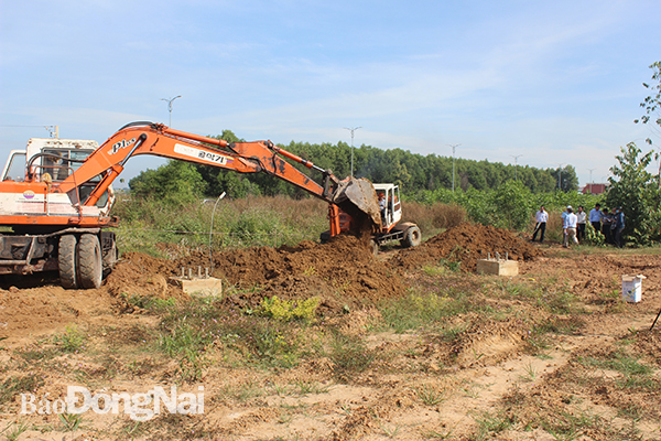 Theo đó, lực lượng chức năng đã tiến hành cưỡng chế một phần đất của hộ ông Nguyễn Văn Tới và bà Nguyễn Thị Phương Anh tại thửa đất số 11, tờ bản đồ số 7, phường Tam Phước. Lý do cưỡng chế để bàn giao mặt bằng để thi công dự án công trình trạm biến áp 110kV Giang Điền và đường dây đấu nối qua phường Tam Phước và Phước Tân (TP.Biên Hòa).
