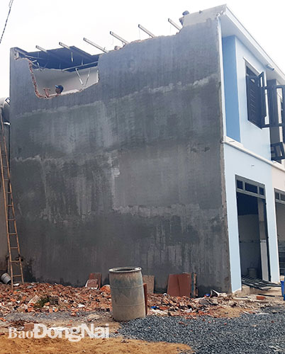 | 2 căn nhà liền kề của hộ ông Lỗ Văn Điệp tại khu phố 4C, phường Trảng Dài xây dựng trái phép trên đất trồng cây lâu năm đã bị cưỡng chế bắt buộc |