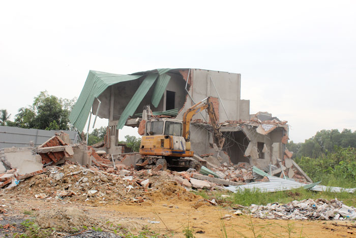 Theo xác định của chính quyền địa phương thì đây là khu đất quy hoạch nuôi trồng thủy sản nhưng bà Thúy đã vây tôn kín cao phía mặt tiền và lén lút xây dựng trong khu đất 3 căn nhà nói trên và đang trong quá trình hoàn thiện. Mặc dù, bị bị lực lượng trật tự đô thị của phường phát hiện lập biên bản xử phạt vi phạm hành chính, đồng thời yêu cầu bà Thúy tháo dỡ khôi phục hiện trạng ban đầu nhưng chủ hộ này không chấp hành nên buộc UBND phường tiến hành cưỡng chế theo quy định.