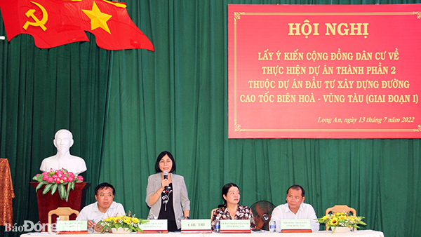 Ngày 13-7, tại UBND 2 xã: Long An và Long Phước (H.Long Thành), Ban thường trực Ủy ban MTTQ Việt Nam tỉnh đã tổ chức Hội nghị lấy ý kiến cộng đồng dân cư về thực hiện Dự án thành phần 2 thuộc Dự án Đầu tư xây dựng đường cao tốc Biên Hòa - Vũng Tàu (giai đoạn 1). Hai Phó chủ tịch UBND tỉnh Võ Tấn Đức và Nguyễn Thị Hoàng đã tham dự hội nghị.
