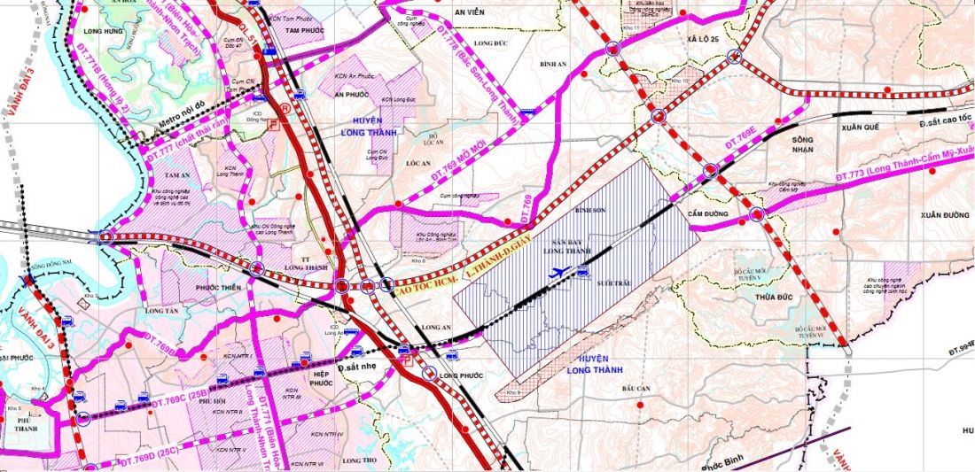 Theo quy hoạch điều chỉnh giao thông của tỉnh Đồng Nai đến năm 2030, phần lớn các tuyến đường được đề xuất mở mới, mở rộng và nâng cấp đều lấy sân bay Long Thành làm trung tâm.