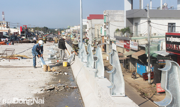 | Công nhân thi công các vị trí cầu vượt Dầu Giây. Ảnh: T.Hải |