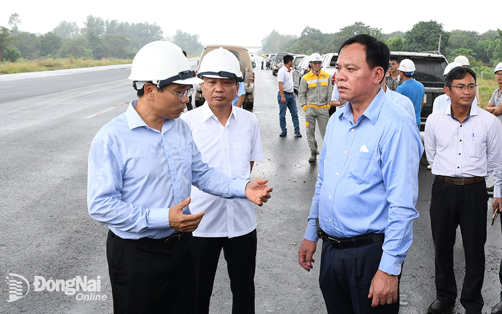 | Phó chủ tịch UBND tỉnh Võ Tấn Đức (bìa phải) đi kiểm tra đường cao tốc Phan Thiết - Dầu Giây. Ảnh: V.NAM |