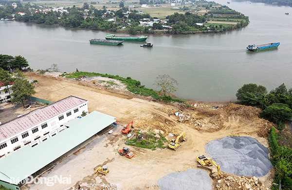 | Dự án Xây dựng đường ven sông Đồng Nai đoạn từ cầu Hóa An đến giáp ranh H.Vĩnh Cửu được khởi công vào cuối năm 2021 đang được triển khai thi công khá chậm. Ảnh: P.Tùng |