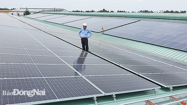 | Công trình điện mặt trời mái nhà trên mái nhà xưởng tại Khu công nghiệp Tam Phước (TP.Biên Hòa). Ảnh: B.Mai |