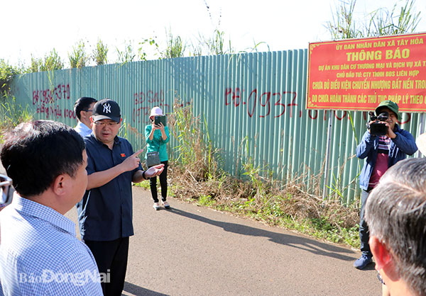 Đó là nhấn mạnh của Phó bí thư Tỉnh ủy, Trưởng đoàn đại biểu Quốc hội tỉnh Quản Minh Cường khi khảo sát thực tế dự án khu dân cư do Công ty TNHH Bất động sản Liên hợp làm chủ đầu tư tại xã Tây Hòa, H.Trảng Bom trong chương trình giám sát về việc quản lý và sử dụng đất đai, xây dựng trái phép giai đoạn 2018-2021 trên địa bàn H.Trảng Bom vào sáng 18-8.