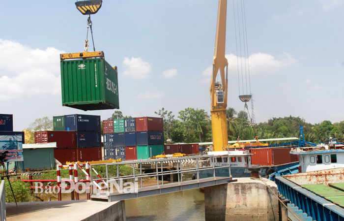 | Bốc dỡ hàng hóa xuất nhập khẩu tại cảng cạn ICD Nhơn Trạch thuộc Tổng công ty Cảng Sài Gòn. Ảnh: Văn Gia |
