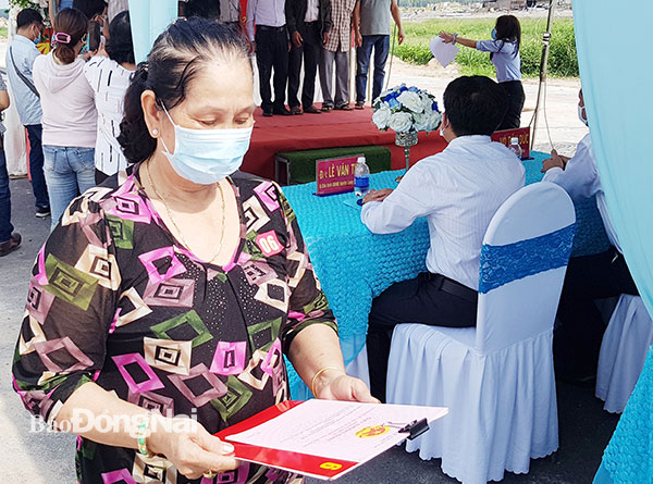 | Một hộ dân ký nhận quyết định bàn giao đất tại khu tái định cư Lộc An - Bình Sơn (H.Long Thành). Ảnh: P.Tùng |
