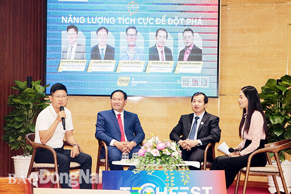 | Shark Nguyễn Mạnh Dũng chia sẻ tại buổi tọa đàm về khởi nghiệp Năng lượng tích cực để bứt phá do Sở KH-CN phối hợp với Tỉnh đoàn cùng Hội Doanh nhân trẻ Đồng Nai tổ chức. Ảnh: V.THẾ |