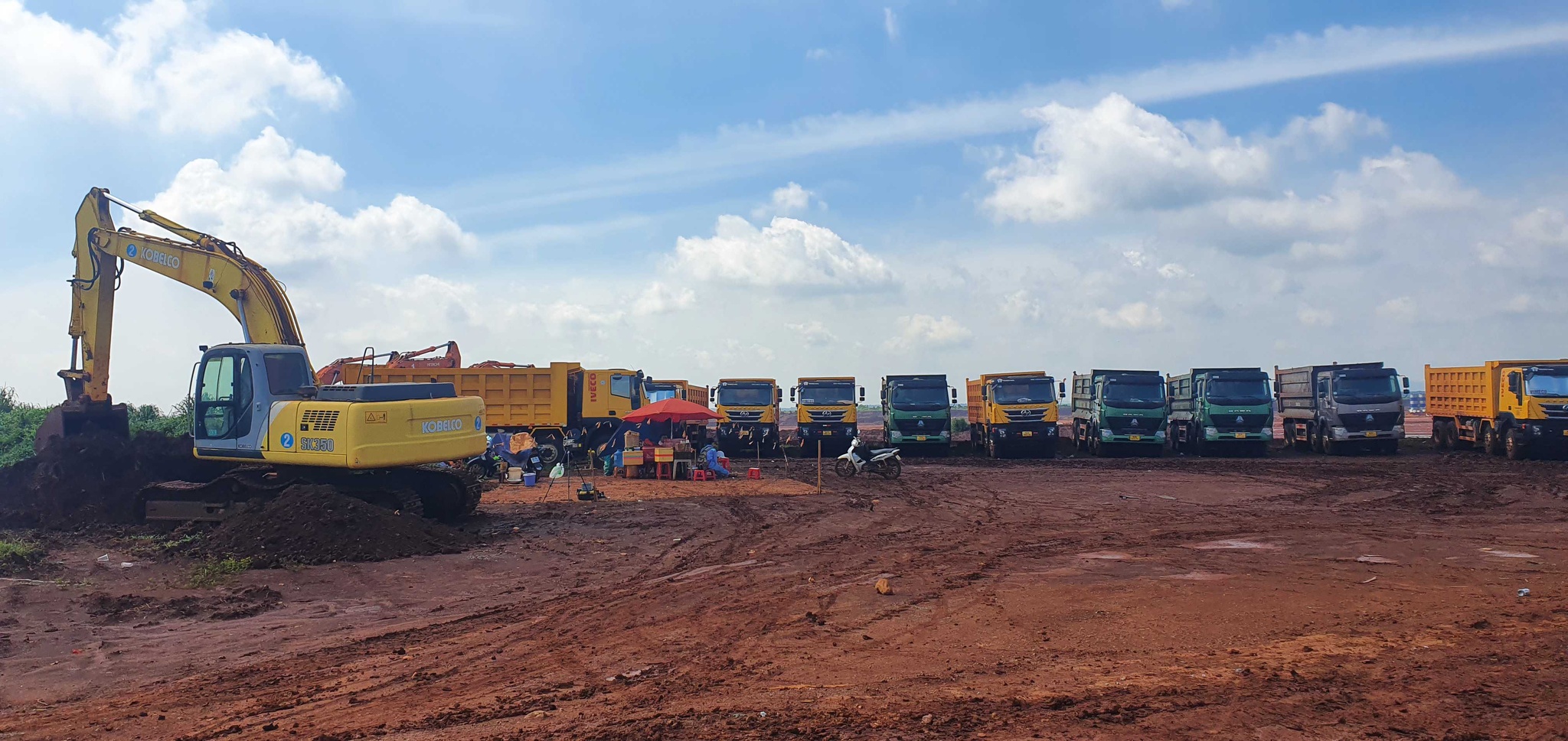 Tuy nhiên, hiện nay do thời tiết xấu, mưa nhiều nên nhiều phương tiện không thi công được, nhất là xe tải chở đất. Cụ thể, theo thống kê từ 17.6 - 14.7, đã có đến 23/28 ngày mưa. Theo ACV, trên công trường có đến 1.075 đầu máy, 1.454 nhân sự tổ chức nhiều dây chuyền thi công. Ngày 19.7, ghi nhận của PV Thanh Niên tại đại công trường xây dựng sân bay Long Thành cho thấy không còn cảnh xe múc hoạt động rầm rộ, xe tải ben chen chúc nhau chở đất mà thay vào đó là không khí trầm lắng, rất ít phương tiện hoạt động. Nhiều xe cộ, máy móc không thi công được xếp hàng nằm dài 2 bên đường, các tài xế mắc võng nằm cạnh nhau tán dóc dưới những tấm bạt che mưa được căng tạm bợ. Trao đổi với chúng tôi, một tài xế than thở: “Giờ chỉ biết nằm chờ thôi, chứ mưa gió quá đất nhão không làm được”.