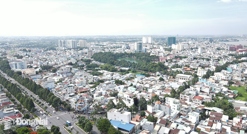 | Quy hoạch Đồng Nai giai đoạn 2021-2030, tầm nhìn đến năm 2050 có vai trò đặc biệt quan trọng trong chiến lược phát triển lâu dài của tỉnh. Trong ảnh: Đô thị Biên Hòa nhìn từ trên cao |