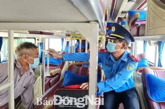 | Lực lượng chức năng kiểm tra y tế đối với phương tiện chở khách qua Đồng Nai |