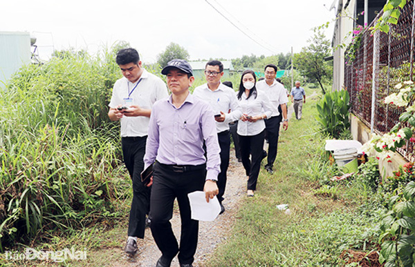 | Đoàn giám sát của HĐND tỉnh giám sát dự án, đất đai tại H.Nhơn Trạch. Ảnh: H.Giang |