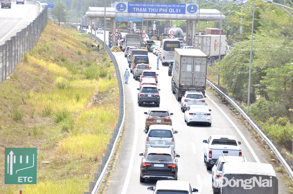| Kẹt xe kéo dài trên đường cao tốc TP.HCM - Long Thành - Dầu Giây tại trạm thu phí nhánh ra quốc lộ 51 (hướng từ TP.HCM - Vũng Tàu). Ảnh: T.Hải |