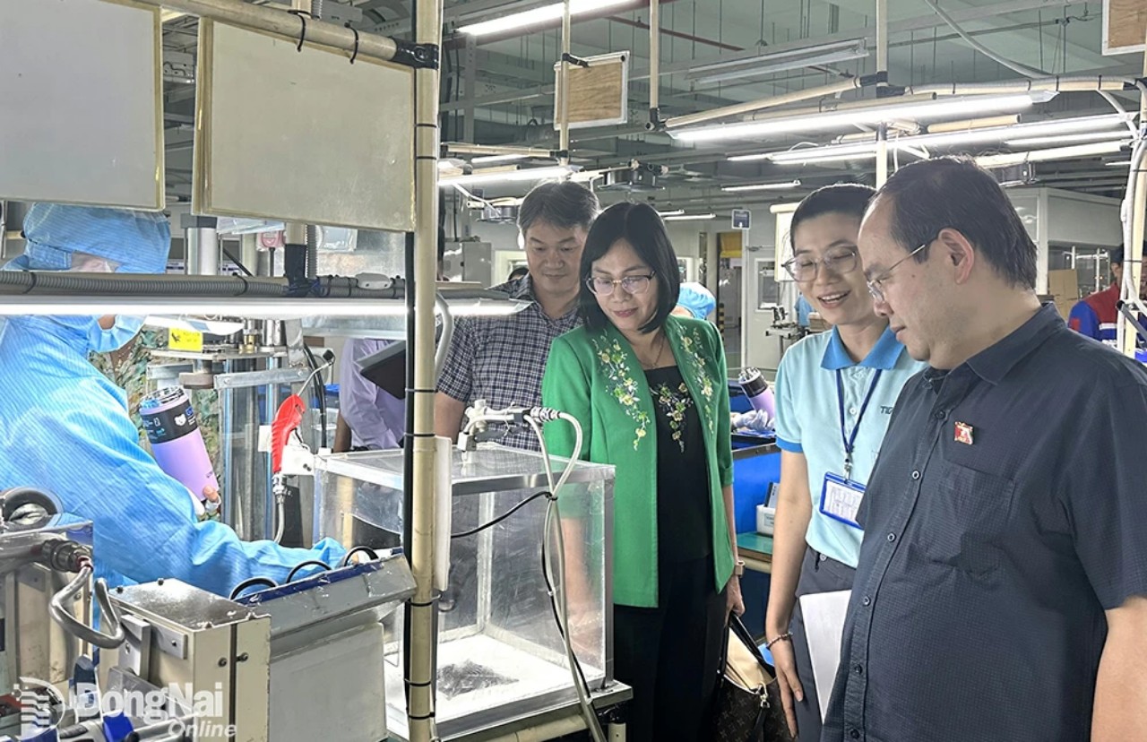 | Lãnh đạo tỉnh tham quan một nhà máy sản xuất đồ điện gia dụng tại Khu công nghiệp Amata. Ảnh: N.LIÊN |