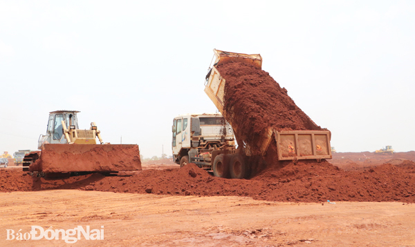 | Gói thầu san nền dự án Sân bay Long Thành giai đoạn 1 đã đạt khối lượng đào đắp hơn 3,1 triệu m3 đất. Ảnh: Q.Nhi |