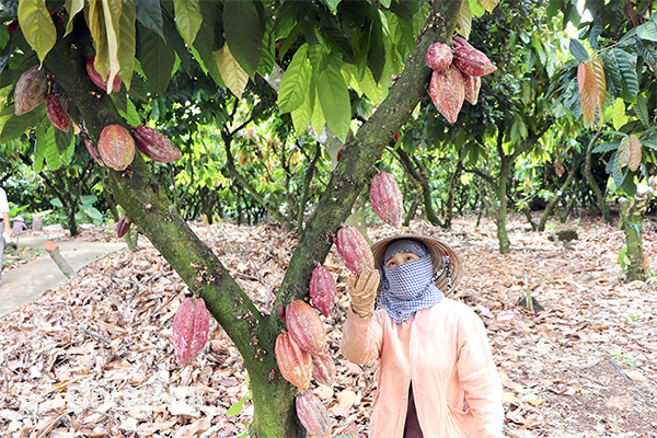 | Dự án Cánh đồng lớn ca cao phục vụ cho thị trường xuất khẩu do Công ty TNHH Ca cao Trọng Đức đầu tư. Ảnh:B. Nguyên |