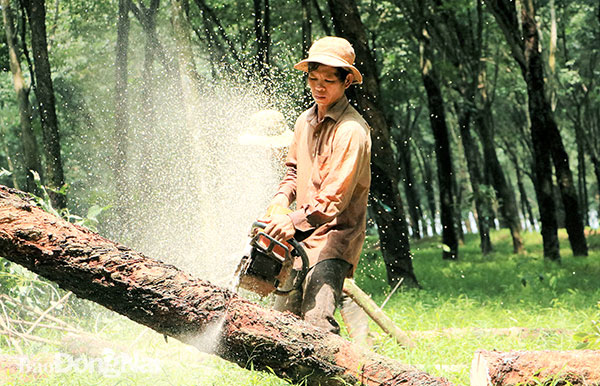 | Hơn 1 tháng nay, việc thanh lý cây cao su để tạo lập mặt bằng sạch trong khu vực ưu tiên giải phóng mặt bằng (khu vực 1,8 ngàn ha) để phục vụ xây dựng sân bay Long Thành giai đoạn 1 đã được gấp rút triển khai thực hiện. |