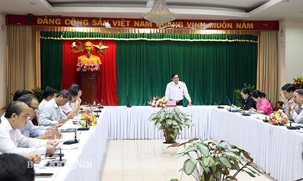 | Phó chủ tịch UBND tỉnh Nguyễn Sơn Hùng phát biểu tại cuộc họp giao ban khối Khoa giáo văn xã 6 tháng đầu năm. Ảnh: H.Yến |