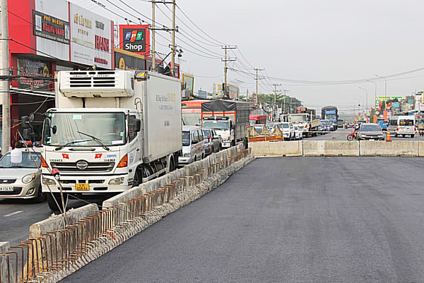 | Hạng mục cầu vượt Dầu Giây đã hoàn thành thảm nhựa mặt đường nhưng chưa cho phép phương tiện lưu thông vì các công trình đảm bảo an toàn giao thông chưa thi công xong. Ảnh: P.TÙNG |