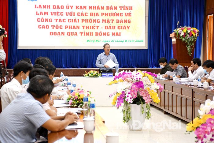Kết luận buổi làm việc, Phó chủ tịch UBND tỉnh Nguyễn Quốc Hùng yêu cầu các địa phương và các đơn vị liên quan phải hoàn thành công tác giải phóng mặt bằng và bàn giao toàn bộ mặt bằng sạch trước thời điểm cuối tháng 9-2020 cho chủ đầu tư.