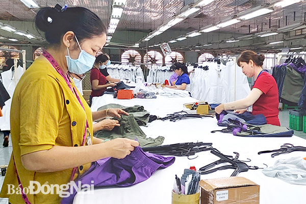 | Sản xuất hàng dệt may xuất khẩu ở Công ty CP Tổng công ty May Đồng Nai. Ảnh: H.Giang |