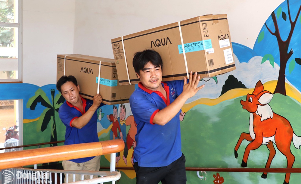 | Đơn vị thi công vận chuyển các máy lạnh để lắp đặt tại các phòng học |