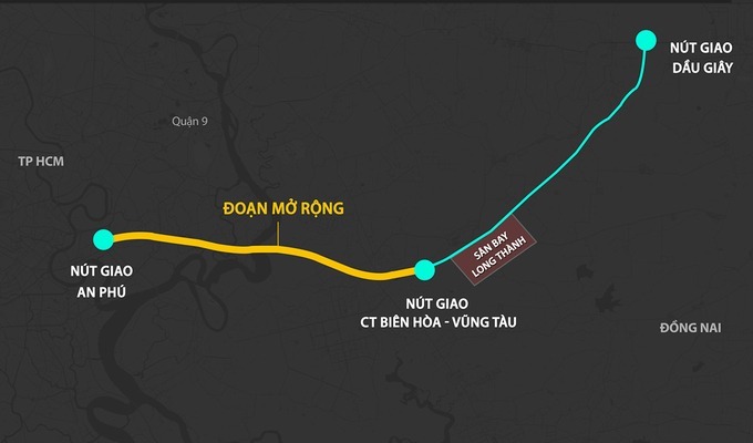 Đoạn mở rộng được đề xuất dài 24 km trong tổng 55 km toàn tuyến. Điểm đầu từ cầu Bà Dạt (quận 2, TP HCM) đến nút giao cao tốc Biên Hòa - Vũng Tàu (huyện Long Thành, Đồng Nai). Đoạn này mở rộng mặt đường gấp đôi hiện nay, từ 4 lên 8 làn xe. Phần còn lại từ Long Thành đến Dầu Giây, dài 31 km giữ nguyên.