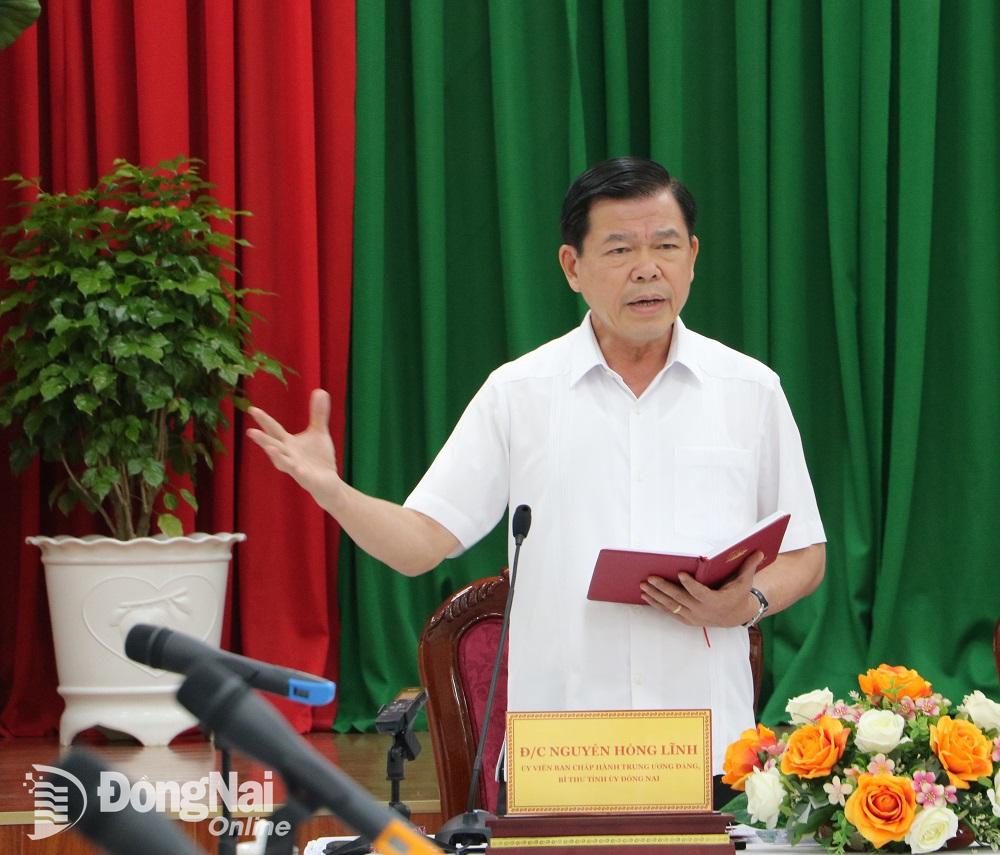 | Ủy viên Trung ương Đảng, Bí thư Tỉnh ủy Nguyễn Hồng Lĩnh phát biểu tại buổi làm việc. Ảnh: Phạm Tùng |