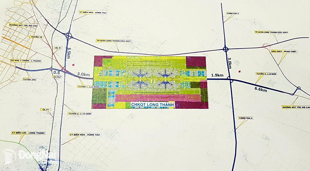 Theo quy hoạch, tuyến đường số 1 có chiều dài 3,8km sẽ có điểm đầu từ cổng phía Tây Sân bay Long Thành kết nối với đường cao tốc Biên Hòa - Vũng Tàu, quốc lộ 51 và điểm cuối khớp nối với đường tỉnh 25C.