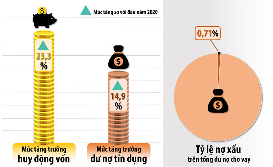 Trong bối cảnh đó, năm 2021, ngành Ngân hàng trên địa bàn tỉnh tiếp tục phấn đấu thực hiện mục tiêu mở rộng tín dụng đi đôi với an toàn chất lượng, đảm bảo cung ứng vốn cho các thành phần kinh tế, tập trung phân bổ vốn vào các lĩnh vực sản xuất, kinh doanh, nhất là các lĩnh vực ưu tiên theo chủ trương của Chính phủ.