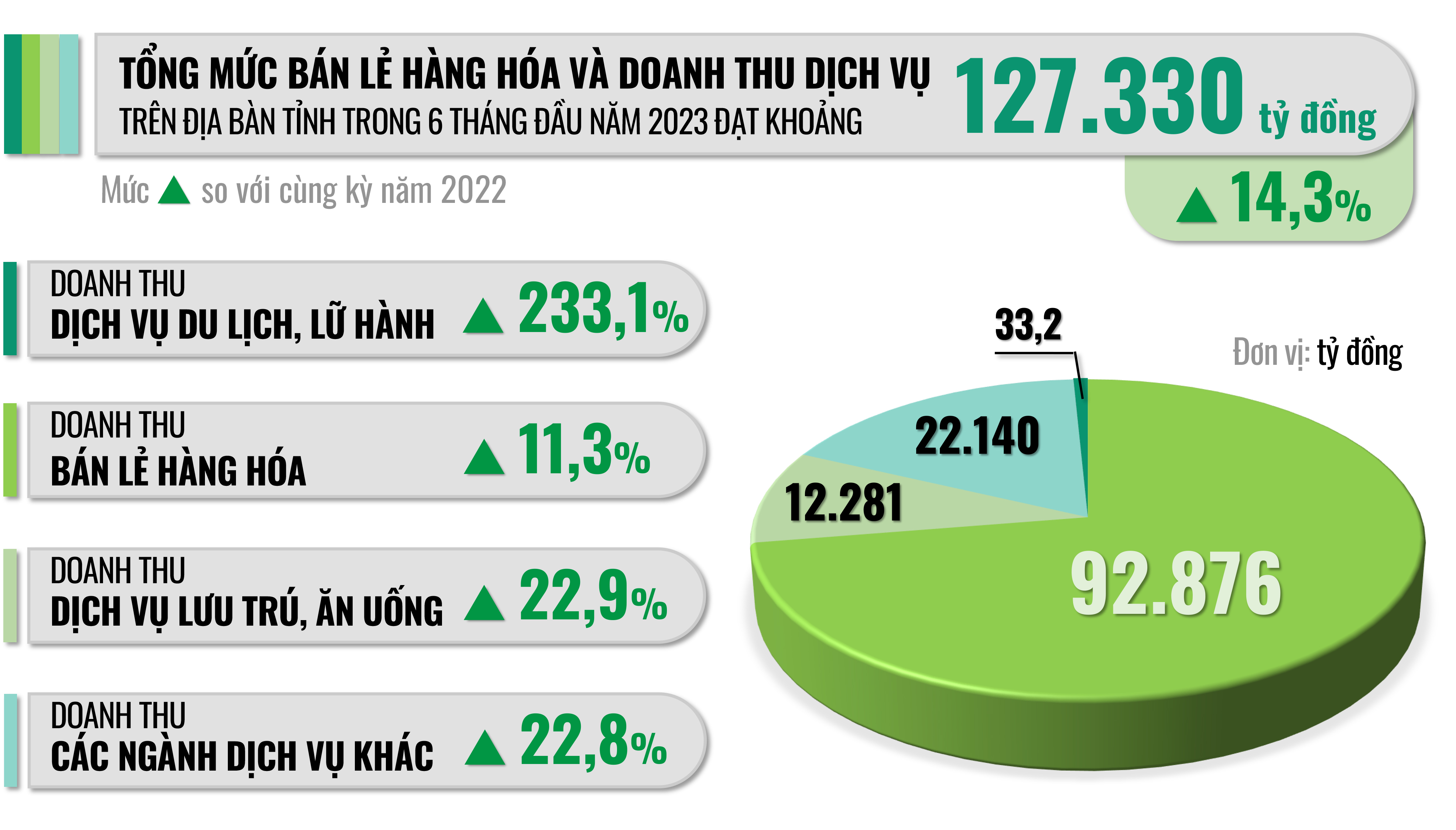 Trên địa bàn tỉnh, hoạt động kinh doanh TMDV tương đối phong phú và đa dạng, hàng hóa trên thị trường tiếp tục phát triển tốt. Ngoài các hạ tầng thương mại được mở rộng, việc quảng bá, xúc tiến thương mại cũng được tỉnh đẩy mạnh với nhiều chuyển biến tích cực.