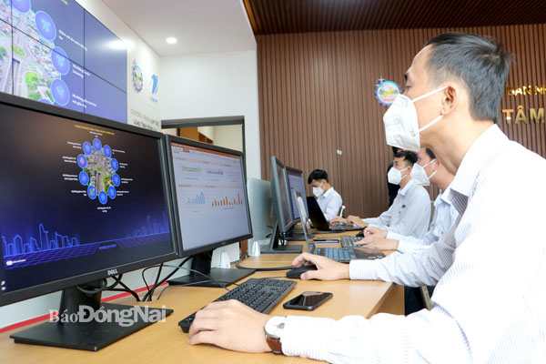 | Hiện nay, trong tỉnh đã thí điểm 2 trung tâm điều hành đô thị thông minh tại TP.Biên Hòa và TP.Long Khánh. Đây là mô hình để các địa phương khác học tập kinh nghiệm để triển khai. Trong ảnh: Hệ thống kỹ thuật tại trung tâm điều hành đô thị thông minh của TP.Biên Hòa. Ảnh: Phạm Tùng |